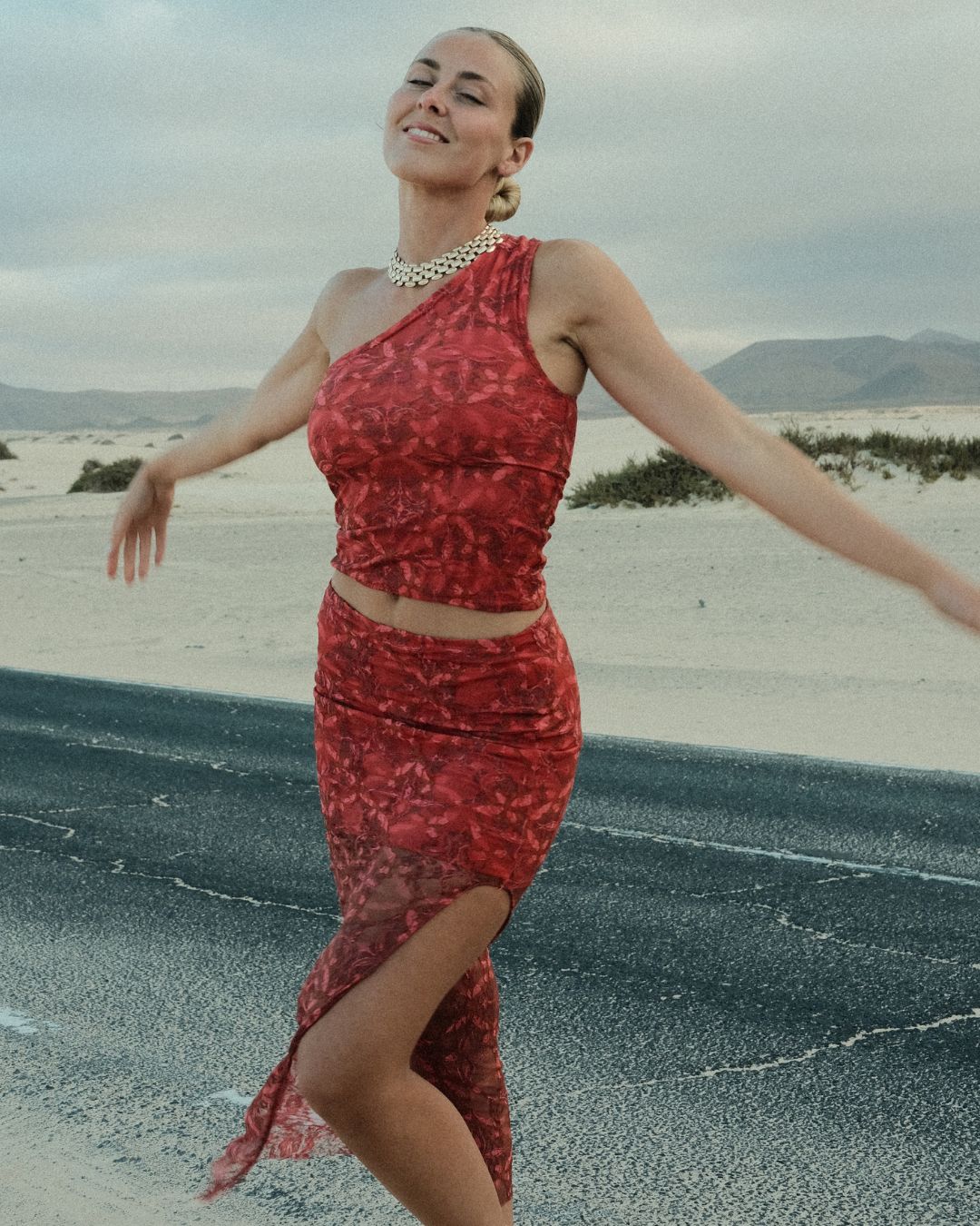- Colores naranjas y rojos: crean una combinación en tonos cálidos que realzan tu figura y aportando un toque de color a tu outfit.